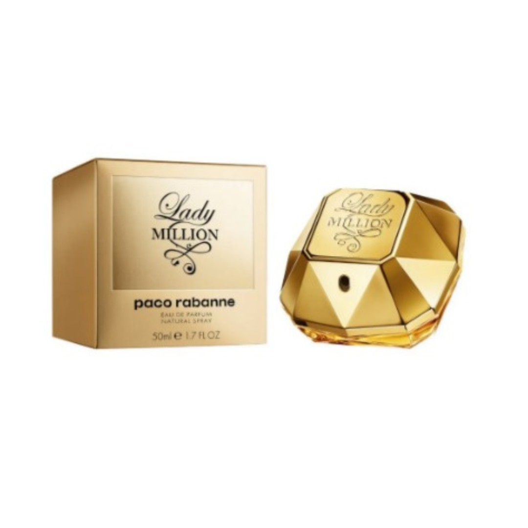 Lady Million creates a feeling of vertigo. A perfume for a cheeky girl, under the spotlight… a golden girl. Lady Million is a woody, floral fragrance, combining fresh, but carnal flowers with sexy patchouli. A fresh and addictive scent, seductive, sensual. Disarming!